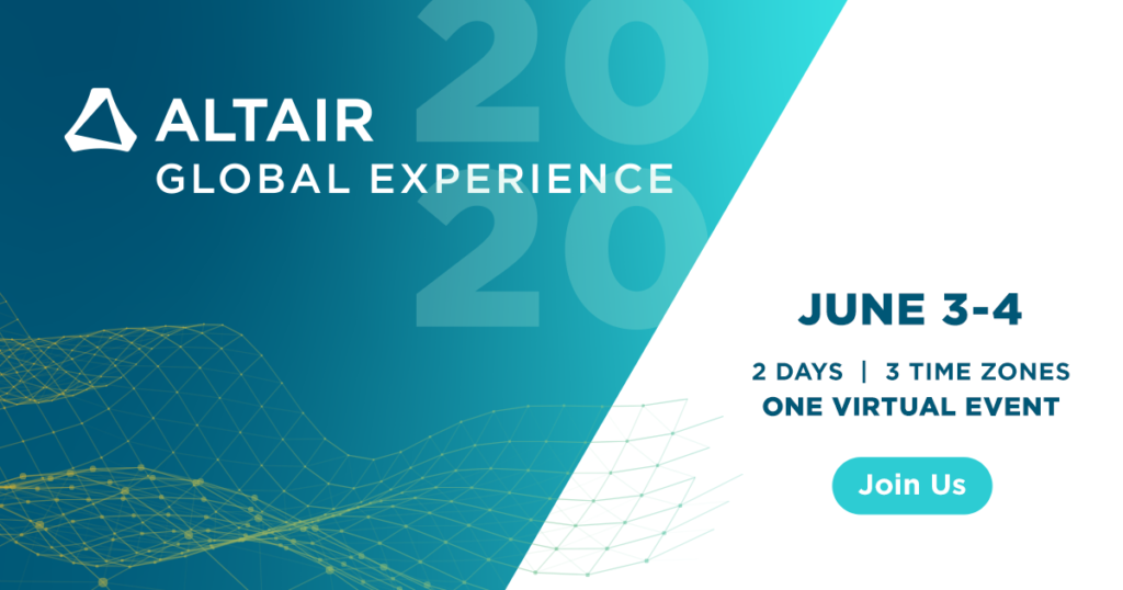 En el contexto de cambio y avance del mundo actual, te invitamos a que nos acompañes en Altair 2020 Global Experience, un magno evento virtual interactivo en donde se revelarán las actualizaciones más importantes de nuestro software en toda la historia de Altair, este 3-4 de Junio del 2020.