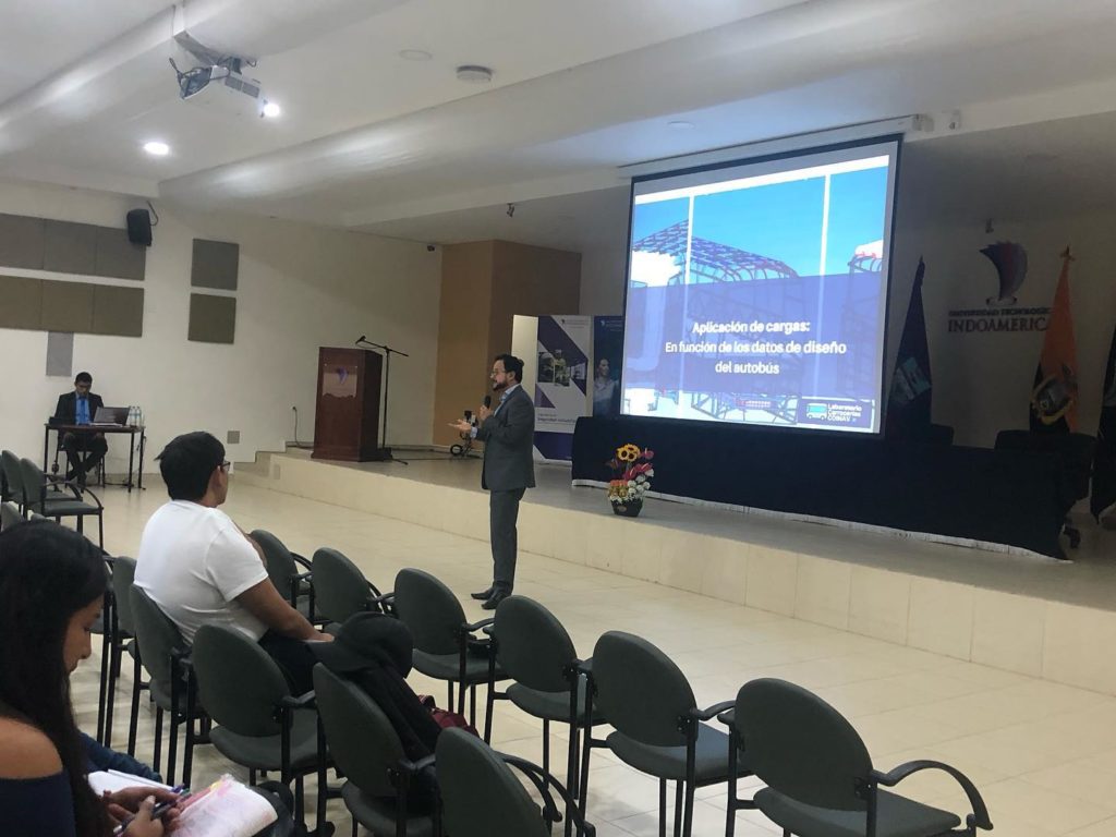 Con un importante marco de público, el CEO de COINAV S.A., Ing. Jorge Luis Cepeda, M.Sc., ofreció la conferencia magistral titulada : “Primer Laboratorio de Ensayos Estructurales de Autobuses en Latinoamérica: Innovación y Acreditación” en el marco del 3er Encuentro Internacional Ciencia, Tecnología e Innovación 2019 en Universidad Tecnológica Indoamérica Ambato, en la cual, compartió parte de las experiencias acumulada en su labor como co-fundador del Laboratorio de Carrocerías de la Corporación Ingeniería Avanzada COINAV del Ecuador S.A., tanto en ensayos de volcadura de autobuses y como laboratorio acreditado internacionalmente en la realización de ensayos de autobuses.
