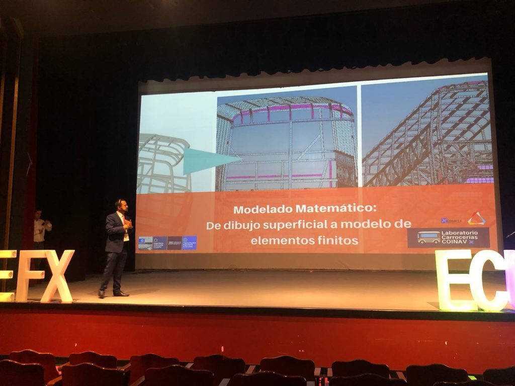 En la conferencia magistral, el Ing. Cepeda compartió parte de las experiencias acumulada en su labor como co-fundador del Laboratorio de Carrocerías de la Corporación Ingeniería Avanzada COINAV del Ecuador S.A., y distribuidor autorizado e instructor certificado de Altair HyperWorks para el Ecuador, tanto en ensayos de volcadura de autobuses y como laboratorio acreditado internacionalmente en la realización de ensayos de autobuses.